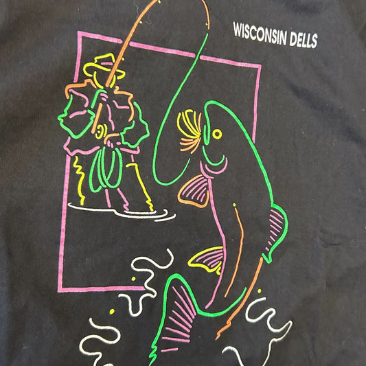 Y2K Wisconsin Dells Neon Fisherman Outline Tee