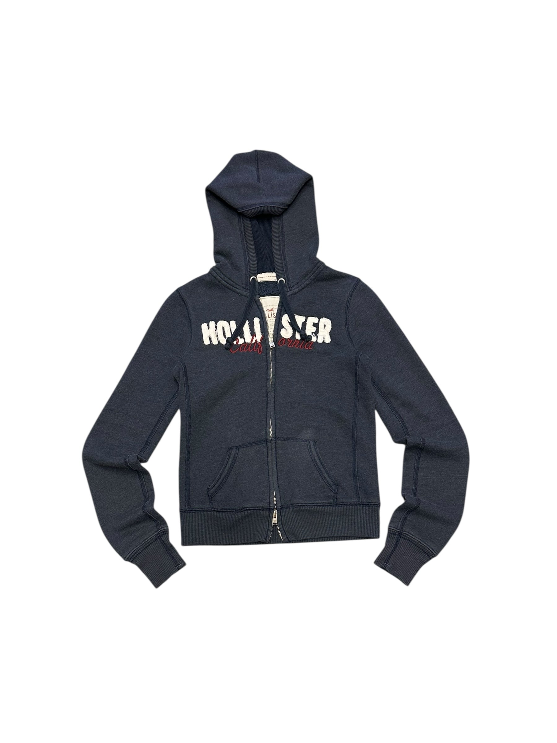 Women’s Y2K Hollister Classic Navy Blue Double Zipper Henley Hoodie